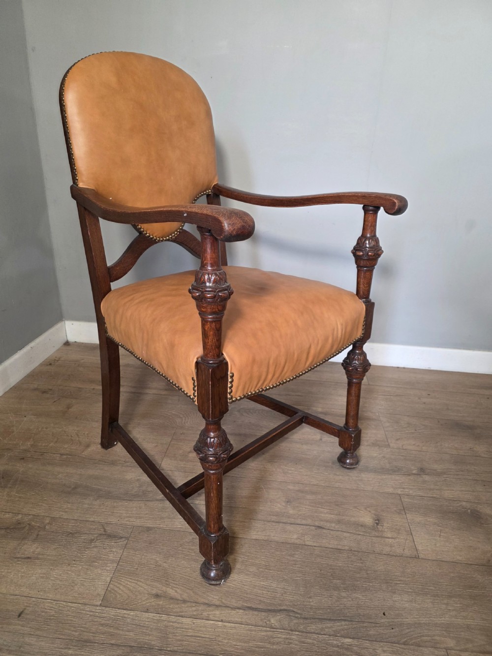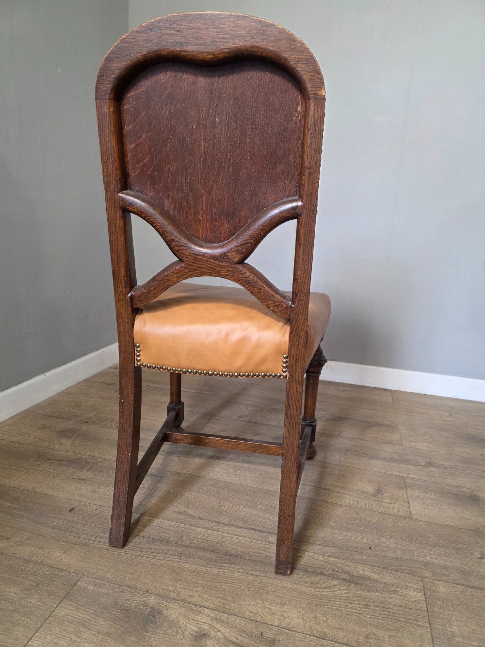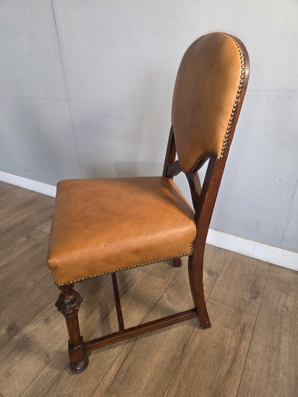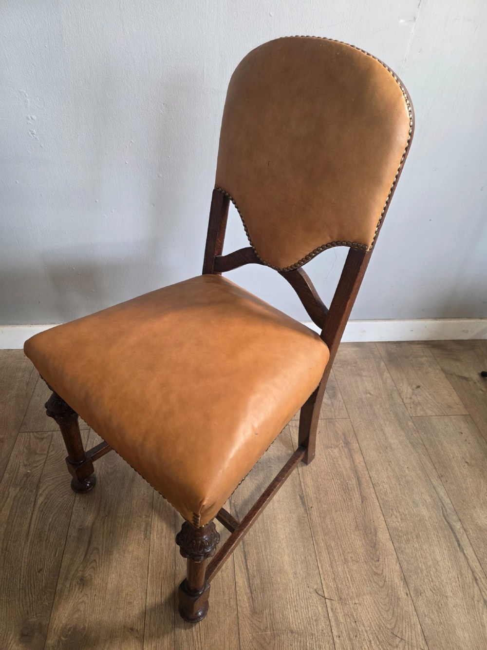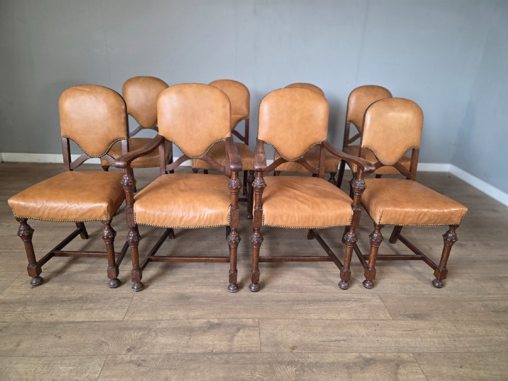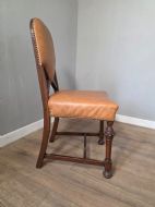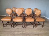 Set of 8 Antique Oak and Leather Dining Chairs