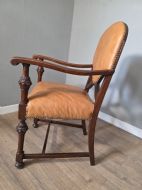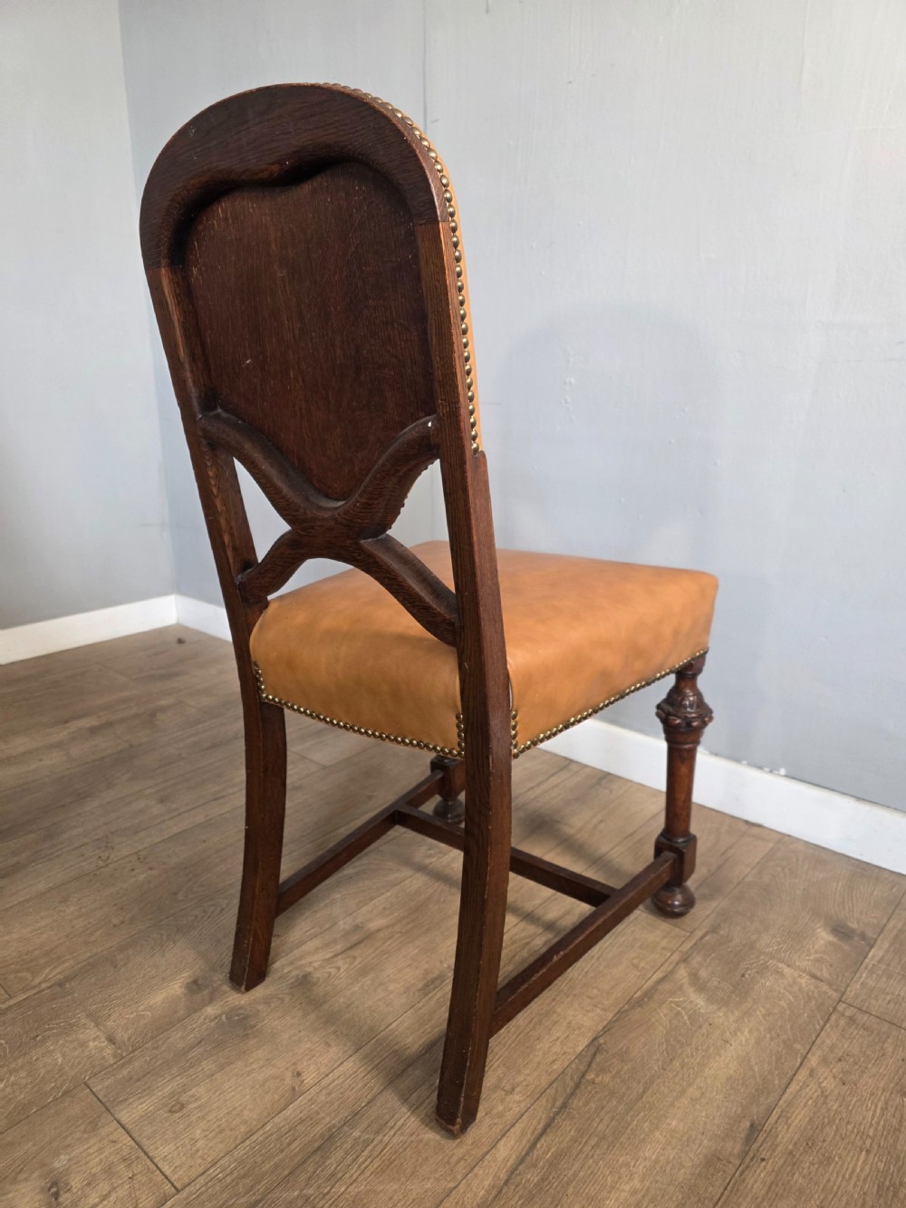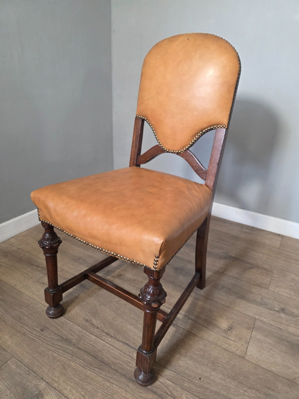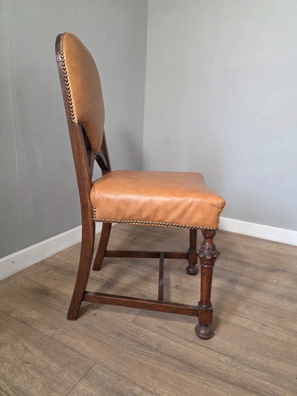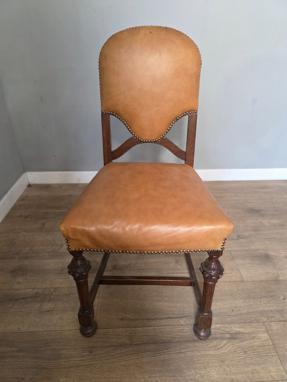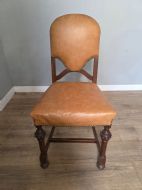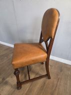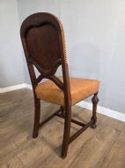 These chairs exude old-world charm and sophistication. Each chair is crafted from solid oak and luxurious leather upholstery adding a touch of elegance to any dining table. The timeless design and quality materials make these dining chairs a timeless addition to any home.