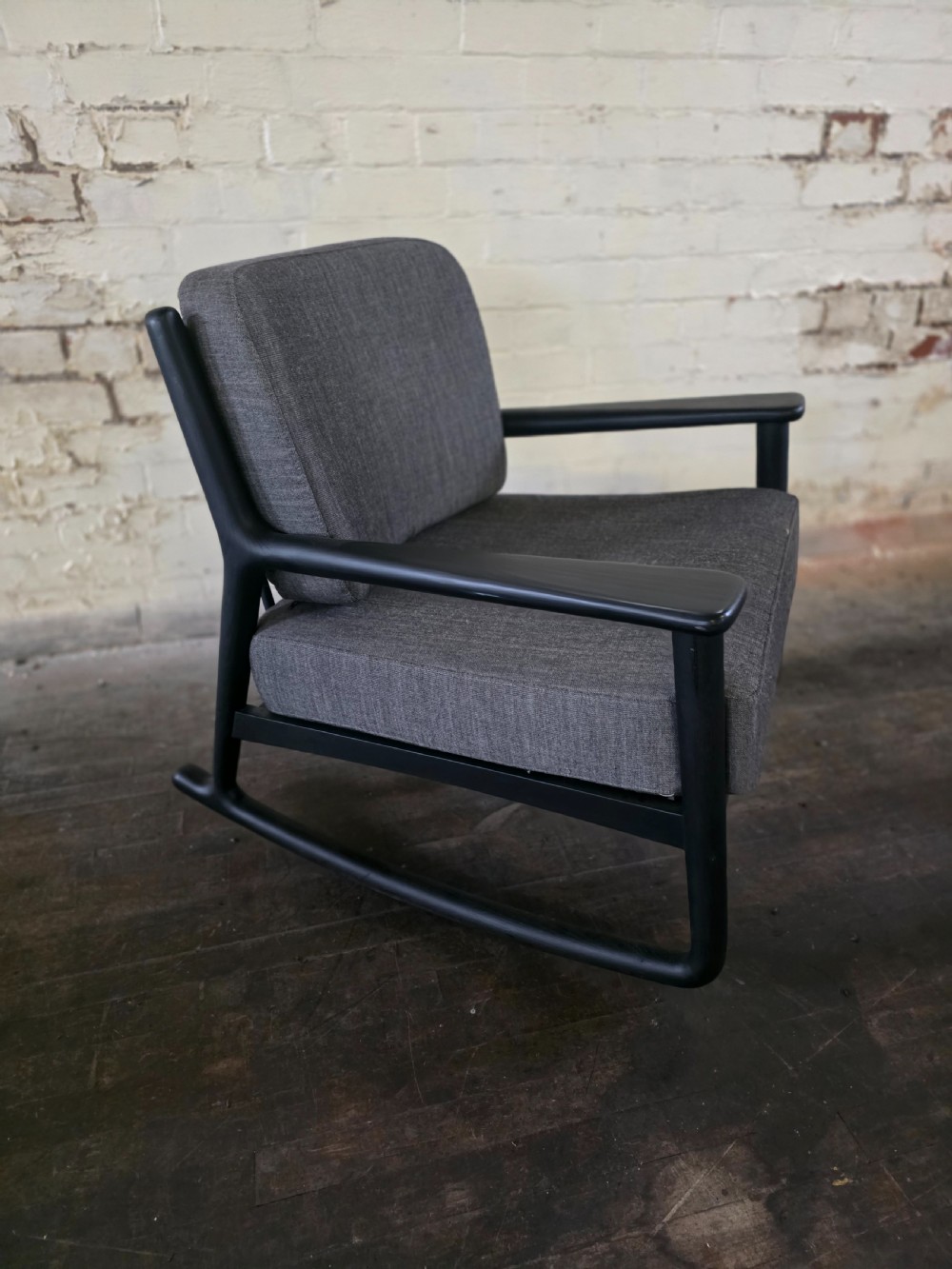 This pair of Mid-Century Style Rocking Chairs with Arms is the perfect addition to any adults living space. The grey colour and Mid-Century modern design adds a touch of retro charm to any room. The chairs are 74cm tall, and 80cm in length. The chairs are extra comfortable.