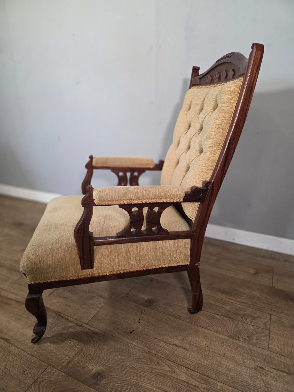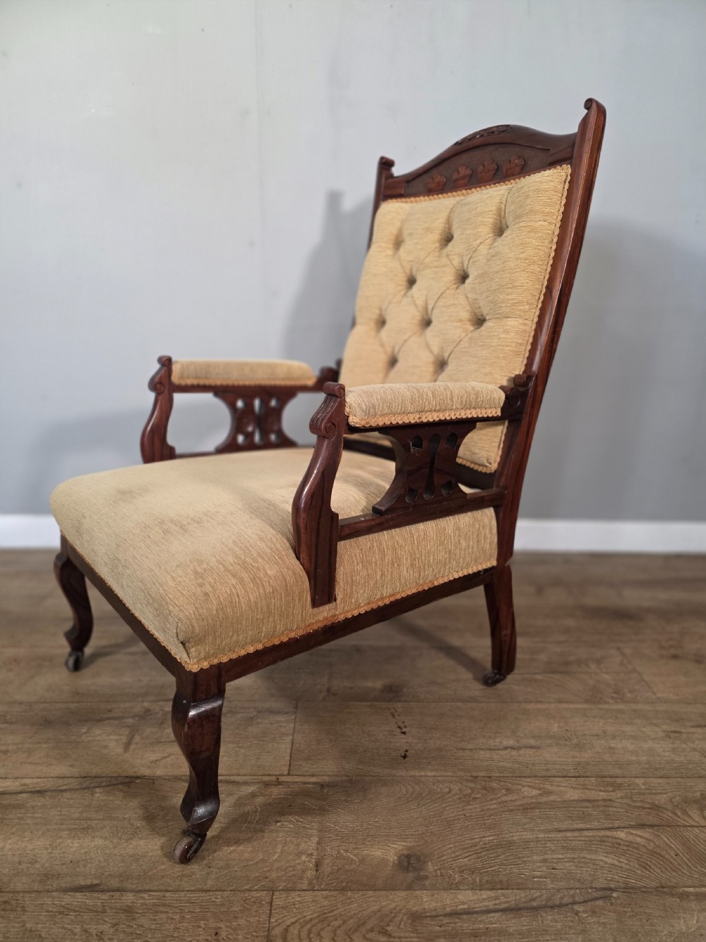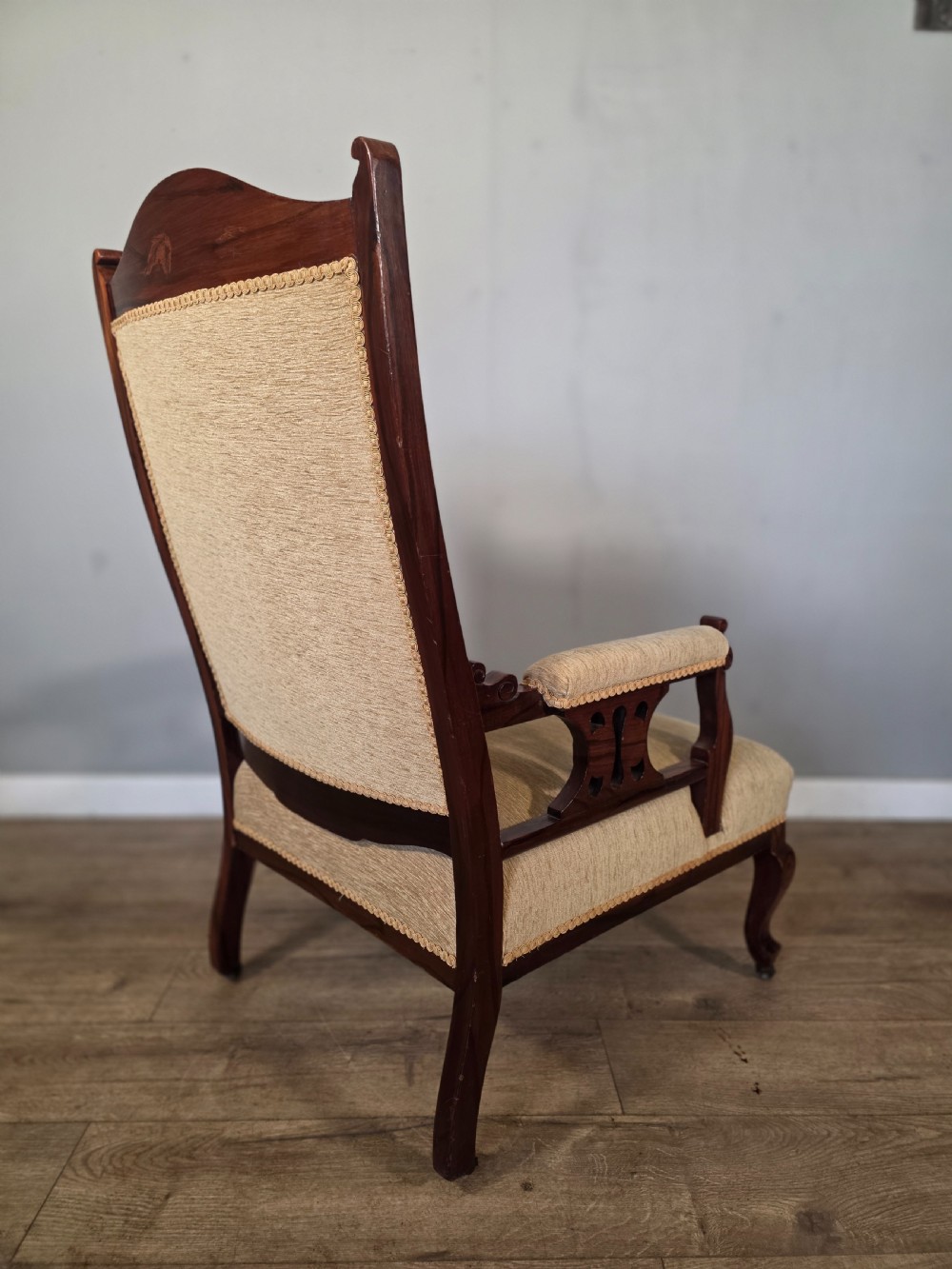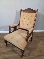 This chair exudes vintage charm and sophistication. Crafted from luxurious walnut material with a stylish beige colour, this chair embodies the elegance of the edwardian era. Perfect for those who appreciate antique furniture.