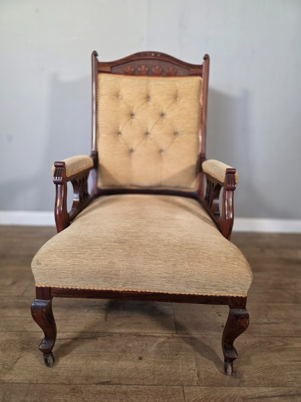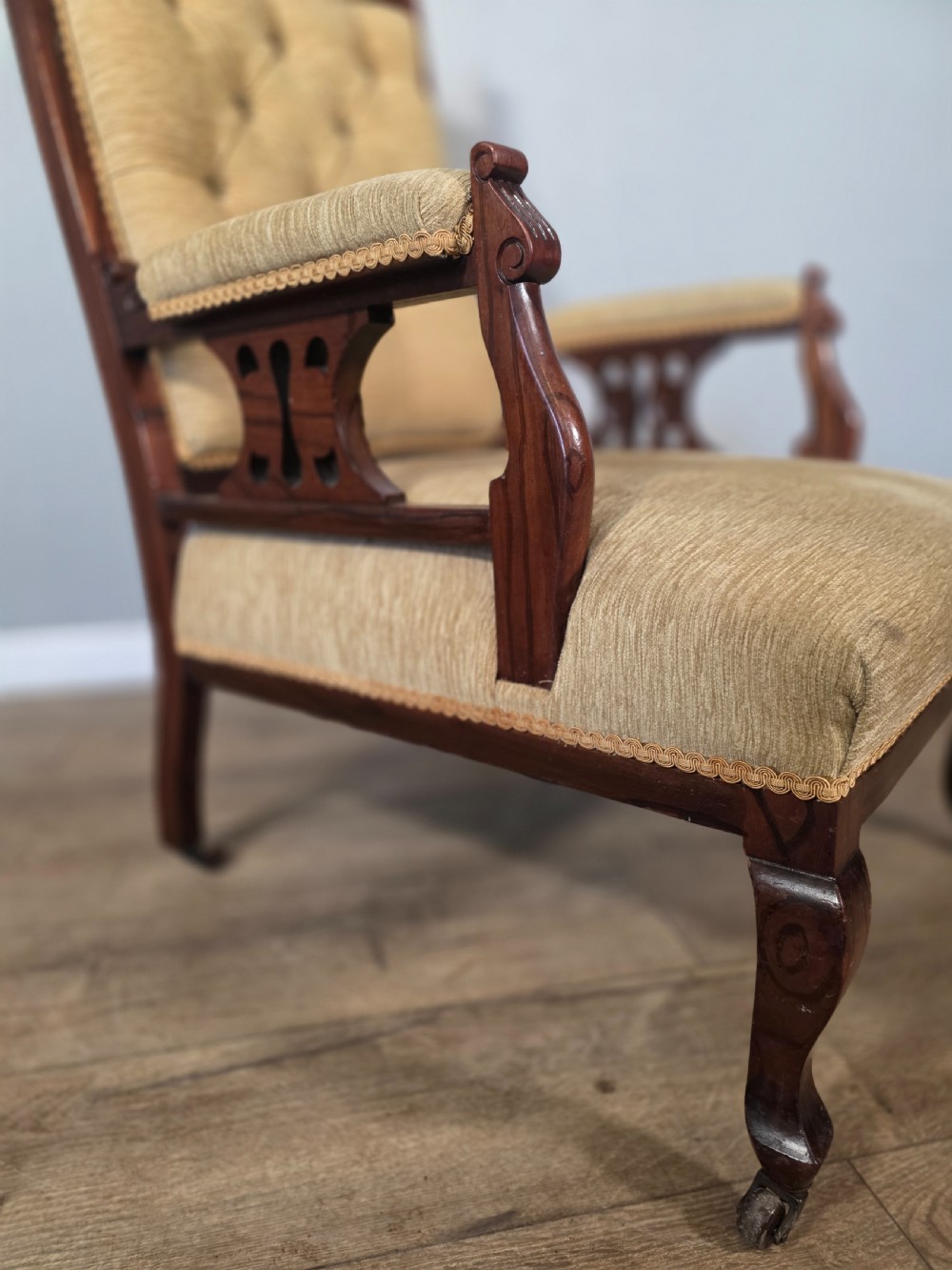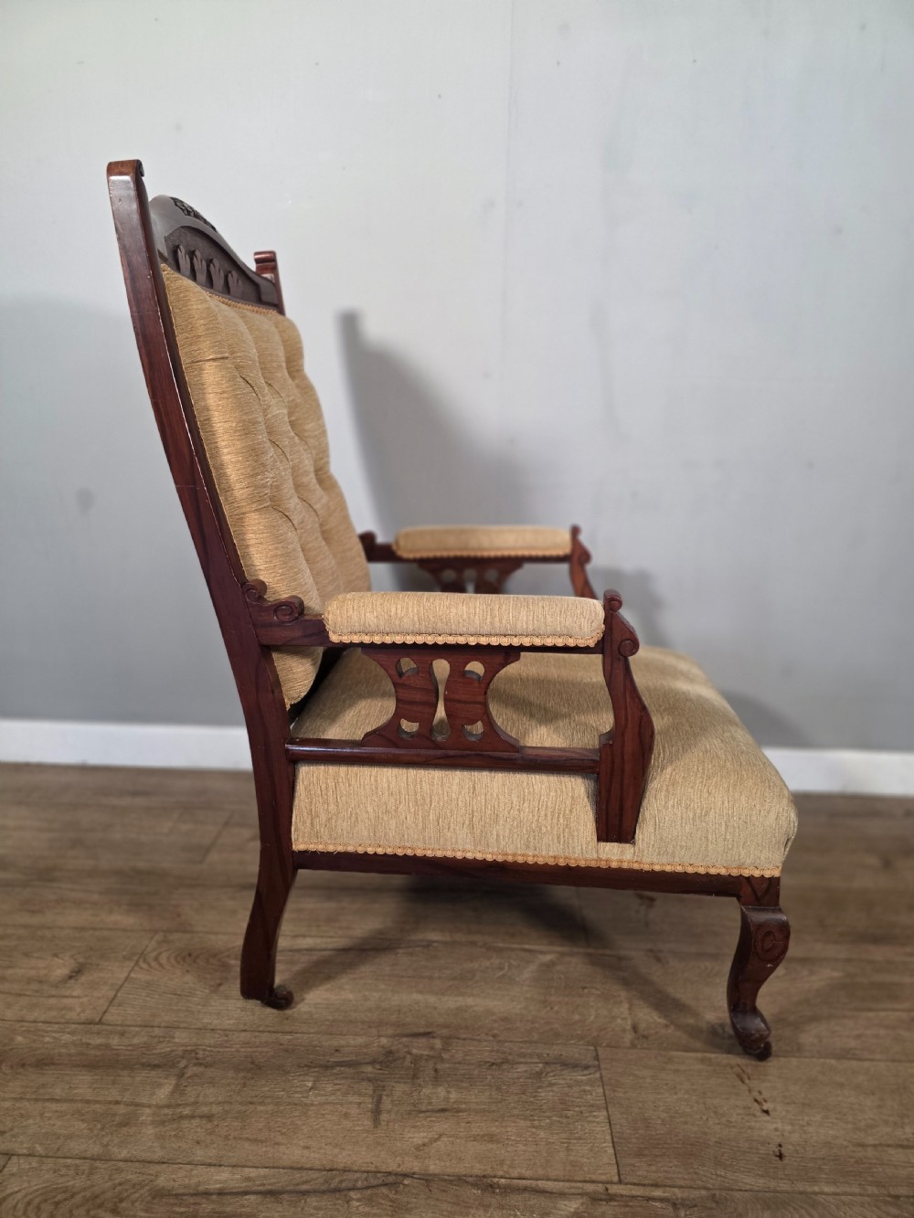 This chair exudes vintage charm and sophistication. Crafted from luxurious walnut material with a stylish beige colour, this chair embodies the elegance of the edwardian era. Perfect for those who appreciate antique furniture.