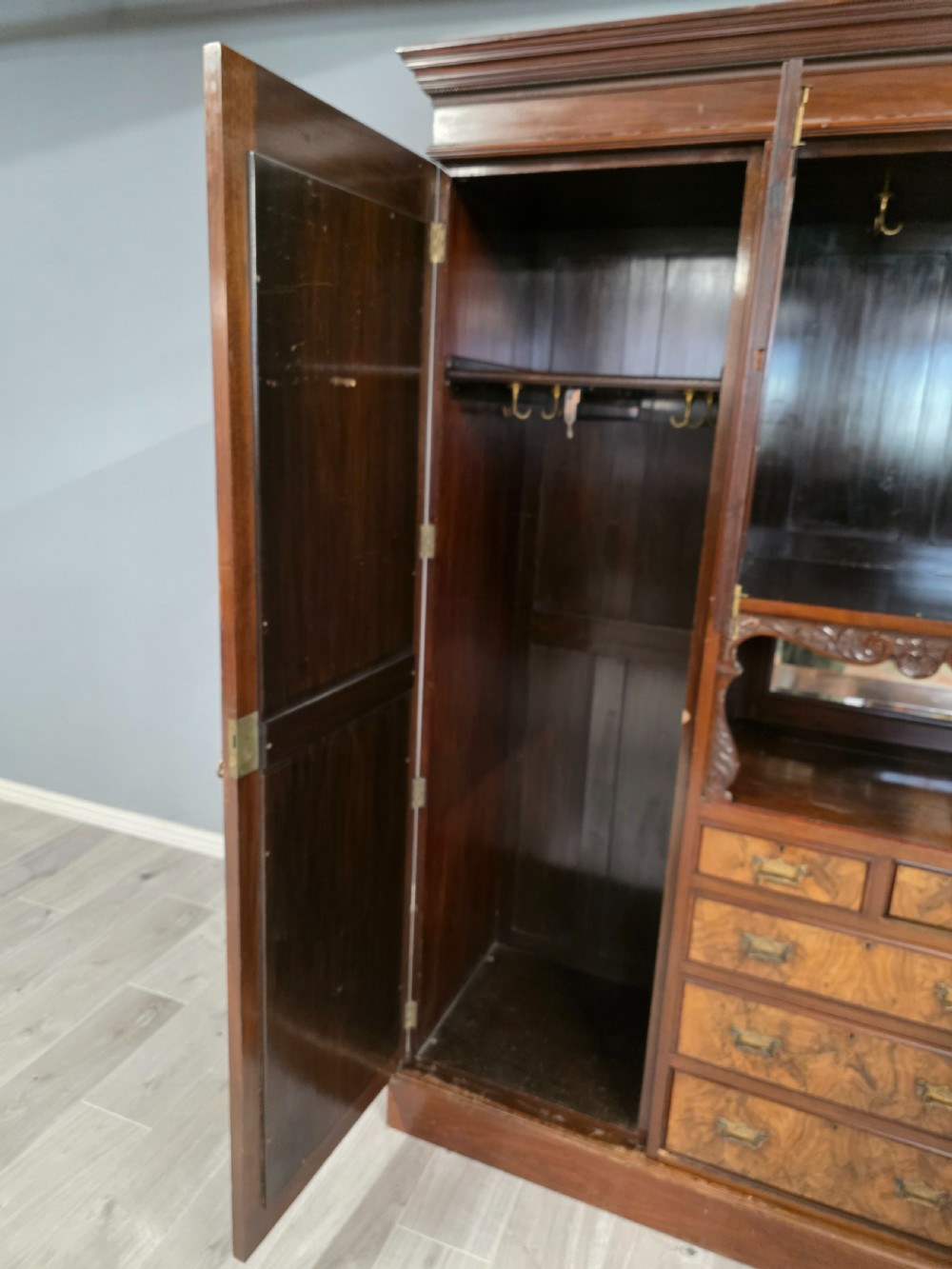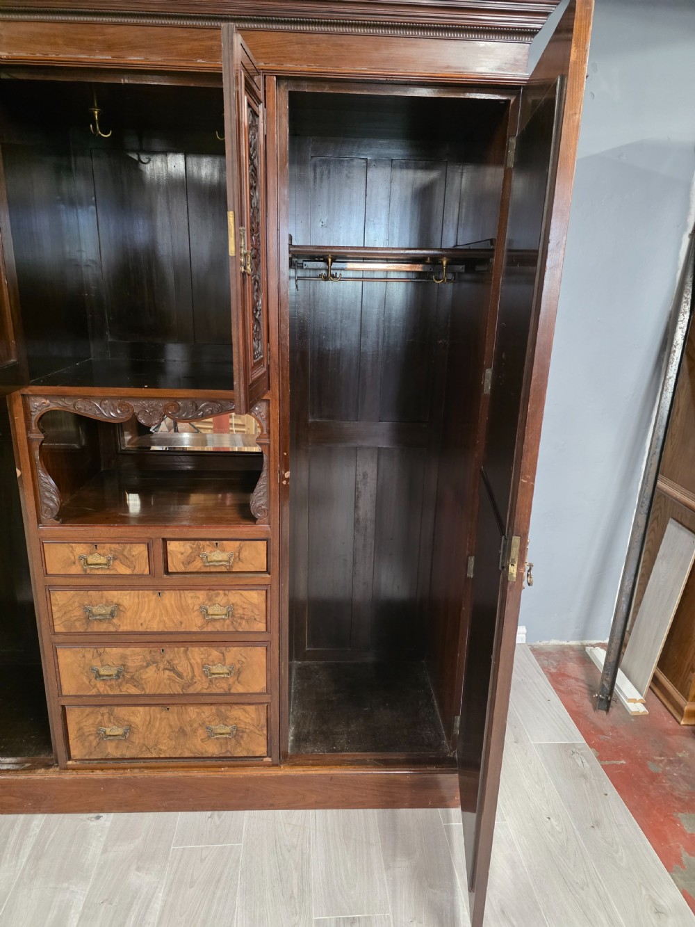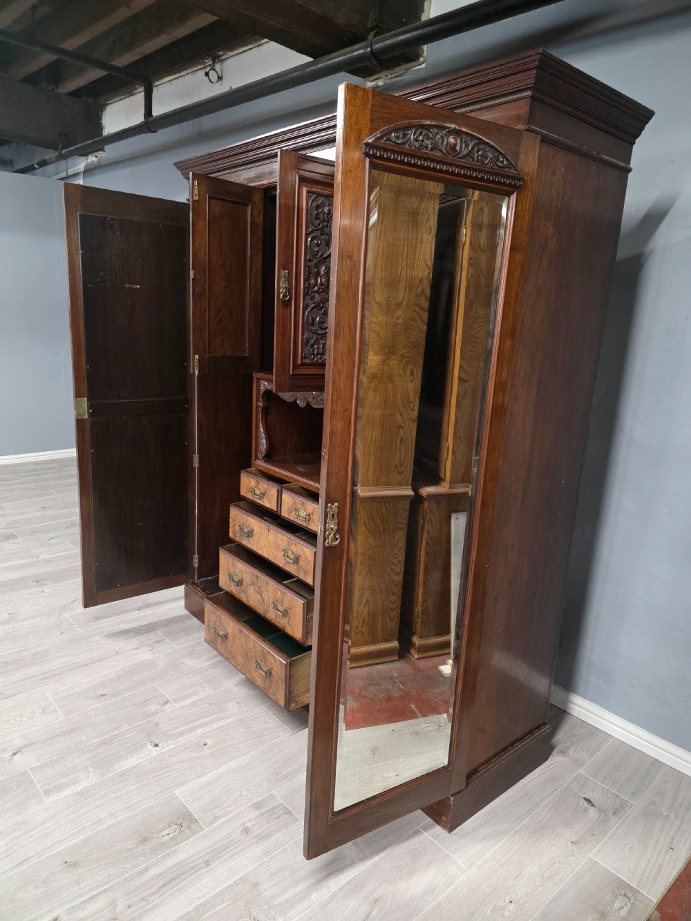 Antique Walnut Late Victorian Princess Combination Wardrobe