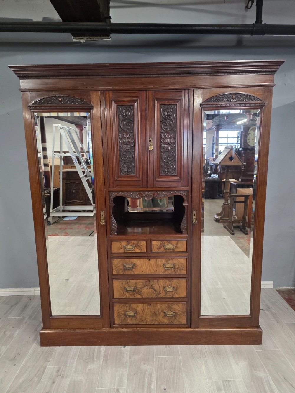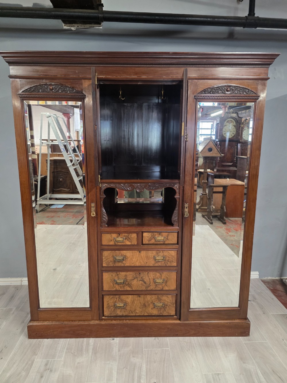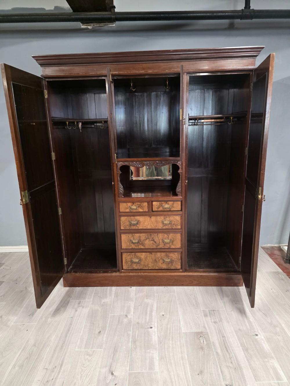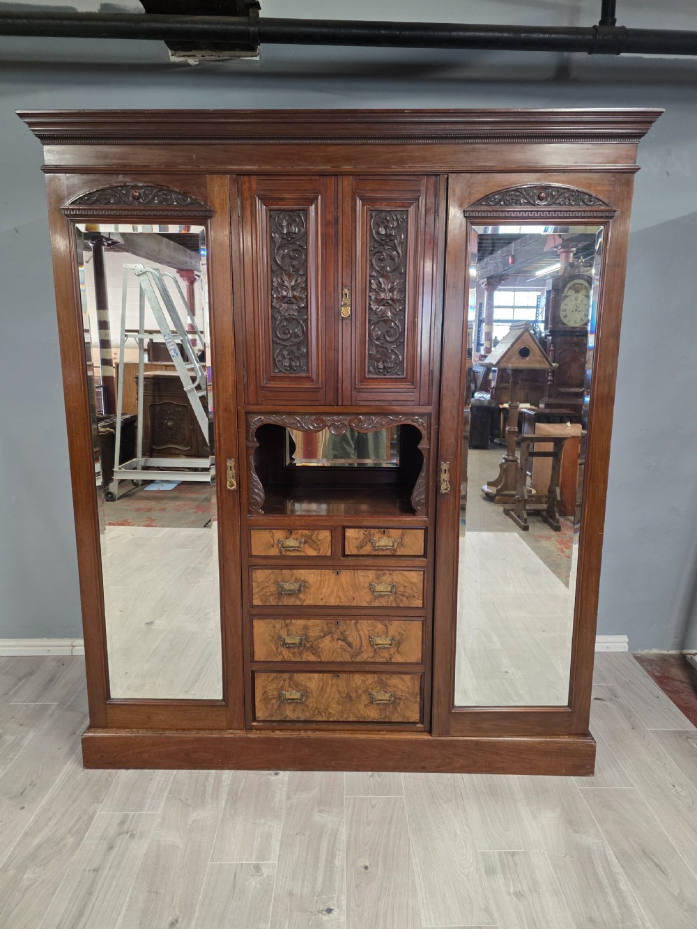 Antique Walnut Late Victorian Princess Combination Wardrobe
